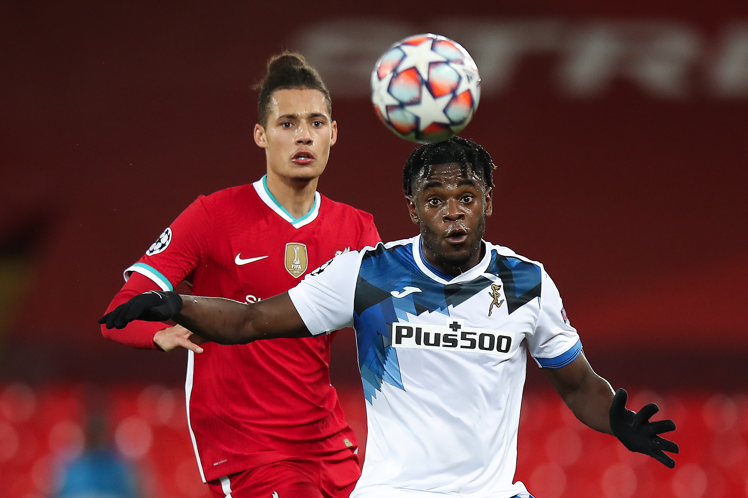 PÅ VAKT: Midtstopper Rhys Williams fikk bryne seg på Atalantas kraftspiss Duvan Zapata.