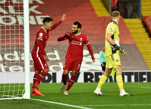 Sheffield United lå som mange andre bortelag på Anfield lavt. Liverpool brukte store deler av førsteomgangen med å finne ut av opplegget til Chris Wilders gutter. Unntakene var et tidlig langskudd fra Trent Alexander-Arnold og et innspill fra Salah som Egan var inne og reddet.