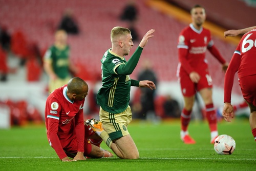 Ja, Fabinho hadde en klønete klarering og ja, han var kanskje i overkant tøff mot United-spiss McBurnie på 16 meter. Men at dommer Mike Dean kontoret, med Andre Marriner og assistent Scott Ledger, var det klart; straffespark. Det er ingen grunn til å legge skjul på at dette var overraskende. Fabinho er på ball i den første taklingen og det ser ut som den andre taklingen, på McBurnies fot, gjøres utenfor. Dermed fikk Sheffield United muligheten til å ta ledelsen og gjorde det ved norske Sander Berge, som tok sitt første straffespark. Dette var The Blades sitt tredje mål denne sesongen.