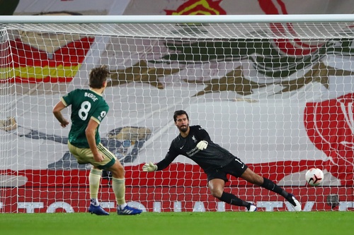 Alisson tilbake etter tre kamper ute. VAR dro det frisparket dommer Dean hadde dømt innenfor.