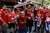 Fansen har samlet seg i sentrum og på en båt for å varme opp.